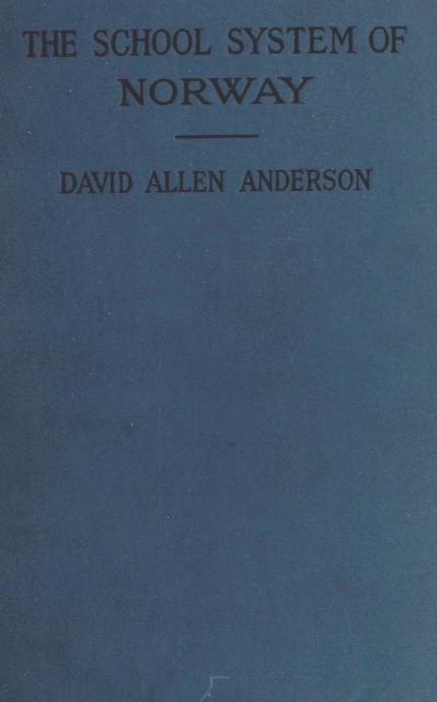 I have, with great pleasure, read through Mr. David A. Anderson's presentation of Norway's school system and found it in all essentials correct, complete and illuminating. Through personal observation, conversation with competent men and study of the most important literature, the author has succeeded in getting a clear and exact view of the Norwegian school methods and characteristic forms of work in their historical development and present condition. His reflections and judgments testify to pedagogical insight and independence of views. It may be that now and then he is somewhat inclined to judge too favorably as to the efficiency of our institutions and the interest of our people and their readiness to sacrifice in order to make this efficiency as high as possible, but this may be due to the fact that he views it against a background of American conditions, which he desires to improve.