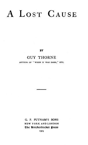 Project Gutenberg's A Lost Cause, by Cyril Arthur Edward Ranger Gull This eBook is for the use of anyone anywhere at no cost and with almost no restrictions whatsoever. You may copy it, give it away or re-use it under the terms of the Project Gutenberg License included with this eBook or online at www.gutenberg.org Title: A Lost Cause Author: Cyril Arthur Edward Ranger Gull Release Date: August 19, 2012 [EBook #40539] Language: English Character set encoding: ISO-8859-1 *** START OF THIS PROJECT GUTENBERG EBOOK A LOST CAUSE *** Produced by Mark C. Orton, Mary Meehan and the Online Distributed Proofreading Team at http://www.pgdp.net (This file was produced from images generously made available by The Internet Archive)