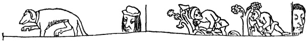 On the estate of Hönen, in Ringerike, there was found at the beginning of last century a runic stone, which was still from to be seen there in 1823, when the inscription was copied. Afterwards the stone disappeared.[20] The drawing made in 1823 is now only known from a somewhat indistinct copy; but from this Sophus Bugge [1902] has attempted to make out the runic inscription, and he reads it thus:
