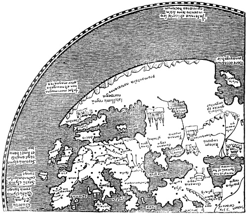 G. Storm [1890] and A. A. Björnbo [1909, pp. 229, ff.] have sought to explain the connection of Wineland with Africa as an attempt on the part of the Icelandic geographers to unite new discoveries of western lands with the classical-mediæval conceptions of the continents as a continuous disc of earth with an outer surrounding ocean. But even if such “learned” ideas prevailed in Iceland and Norway (cf. the “King’s Mirror”), it would nevertheless be unnatural to unite Africa and Wineland, which lay near Hvítramanna-land, six days’ sail west of Ireland, unless there were other grounds for doing so. Although agreeing on the main point, Dr. Björnbo maintains (in a letter to me) that the Icelanders may have got their continental conception from Isidore himself, who asserted the dogma of the threefold division of the continental circle; and the question whether Wineland was African or not depended upon whether it came south or north of the line running east and west through the Mediterranean. But the same Isidore also described the Insulæ Fortunatæ and other countries as islands in the Ocean, and his dogma could not thus have hindered Wineland from being regarded as an island like other islands (cf. Adam of Bremen’s islands), but why then precisely African? Besides, the Icelandic geography and the Historia Norwegiæ represent two different conceptions, one as a continent, the other as islands. It cannot,[Pg 3] therefore, have been Isidore’s continental dogma that caused them both to assume the country to be African. It seems to me that no other explanation is here possible than that given above.