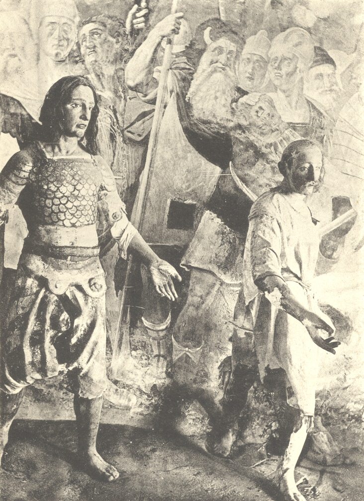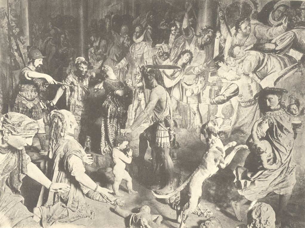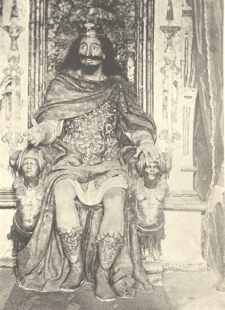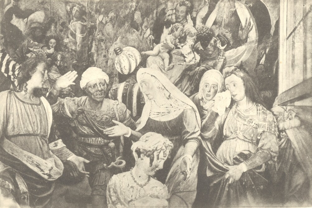 I should wish to modify in some respects the conclusion arrived at on pp. 148, 149, about Michael Angelo Rossetti’s having been the principal sculptor of the Massacre of the Innocents chapel. There can be no doubt that Rossetti did the figure which he has signed, and several others in the chapel. One of those which are probably by him (the soldier with outstretched arm to the left of the composition) appears in the view of the chapel that I have given to face page 144, but on consideration I incline against the supposition of my text, i.e., that the signature should be taken as governing the whole work, or at any rate the greater part of it, and lean towards accepting the external authority, which, quantum valeat, is all in favour of Paracca. I have changed my mind through an increasing inability to resist the opinion of those who hold that the figures fall into two main groups, one by the man who did the signed figure, i.e., Michael Angelo Rossetti; and another, comprising all the most vigorous, interesting, and best placed figures, that certainly appears to be by a much more powerful hand. Probably, then, Rossetti finished Paracca’s work and signed one figure as he did, without any idea of claiming the whole, and believing that Paracca’s predominant share was too well known to make mistake about the authorship of the work possible. I have therefore in the title to the illustration given the work to Paracca, but it must be admitted that the question is one of great difficulty, and I can only hope that some other work of Paracca’s may be found which will tend to settle it. I will thankfully receive information about any other such work.
