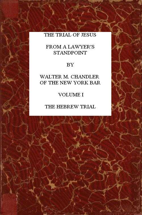 xviBut these trials, one and all, were tame and commonplace, compared with the trial and crucifixion of the Galilean peasant, Jesus of Nazareth. These were earthly trials, on earthly issues, before earthly courts. The trial of the Nazarene was before the high tribunals of both Heaven and earth; before the Great Sanhedrin, whose judges were the master-spirits of a divinely commissioned race; before the court of the Roman Empire that controlled the legal and political rights of men throughout the known world, from Scotland to Judea and from Dacia to Abyssinia.