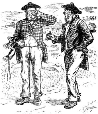 Old Gent. (soliloquising, in the Wilds of Glenmuchie). "Ah, well, this is very Jolly! Wealth's a great Blessing—not that I'm a Rich Man—but after the Turmoil and Worry of Business, to be able to Retire to these charming Solitudes, the Silence only Broken by the grateful Sounds of the rippling Stream ('Burn,' I mean. Ah! I nearly had him then!), and the Hum of the Bee! To be able to leave London and its tiresome Millions, and forget all the Low——"