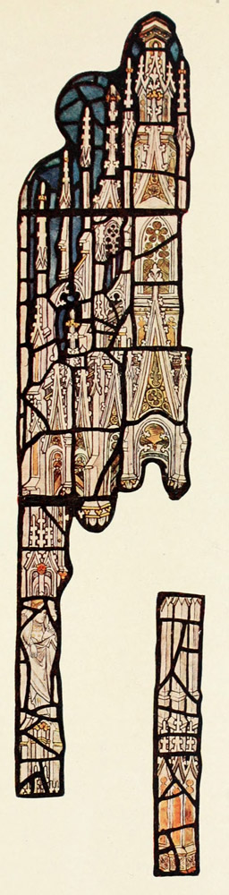 There is especial reason why we English should study the work of our own mediæval glass painters. They are the chief representatives of our primitive school of painting. It is true that there are English manuscripts in the museums, and there are the painted rood screens of Norfolk, including the vii superb example at Ranworth, and there is the portrait of Richard II. at Westminster; but of the painting which must once have covered the walls of our churches, there is little left but patches of faded colour clinging here and there to the plaster, and the occasional dim outline of a figure. Of our glass, on the other hand, in spite of four hundred years of destruction, a considerable quantity remains, and is worth far closer study than it has ever had.