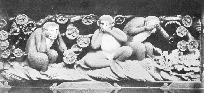 Notwithstanding the changes of recent years, the picturesque and enchanting Old Japan that men of letters have written about so delightfully still survives in many ways. The enormous bronze Buddha at Kamakura sits calmly looking down upon us, as always. At Nikko the avenue of cryptomerias is still wonderfully fine, while the huge blocks of stone in the long flights of steps on the wooded mountain-side bring up a vision of the armies of coolies who placed them there to remain through the ages. The bronze tombs are the same, only more beautifully coloured with age, and the wood-carving and lacquers of the glorious old temples have been kept bright and new by faithful, loving hands. The Inland Sea is just as mysterious and ever-changing, while Fuji is worshipped to-day as it has been since the beginning of all time.