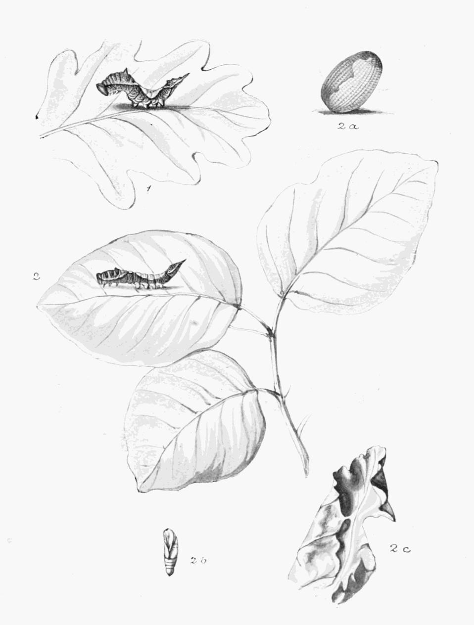 Most of the moths are of large size, many of the caterpillars are of noble proportions, and in both stages they are not difficult to find, if looked for in suitable places and in their proper season. The caterpillars of several kinds, owing to the exposed way in which they feed or rest, are especially noticeable on bush and hedgerow; the chrysalids, although subterranean, are often freely obtained by turning up the soil around trunks of trees, or under plants, upon which the caterpillars feed.