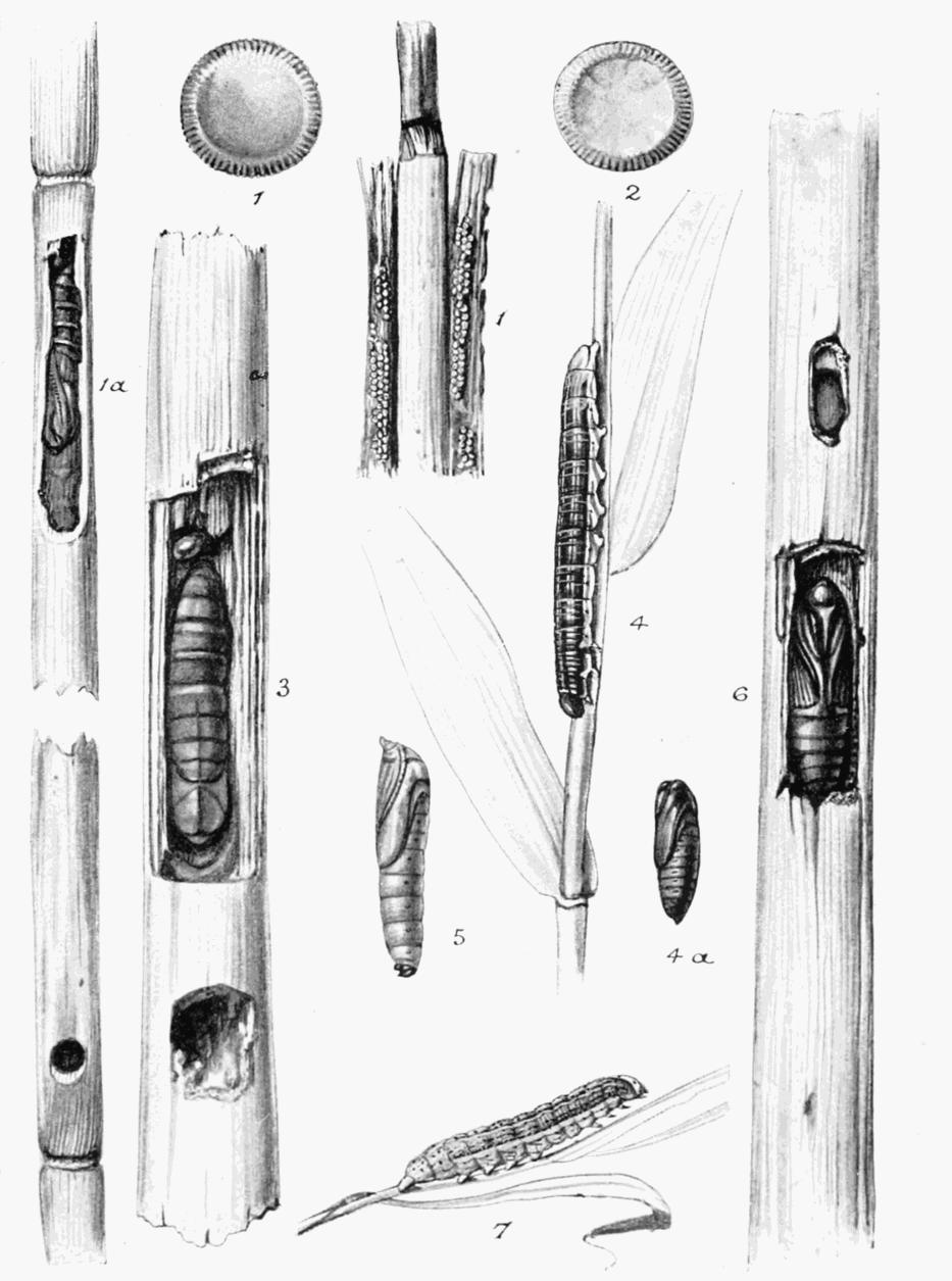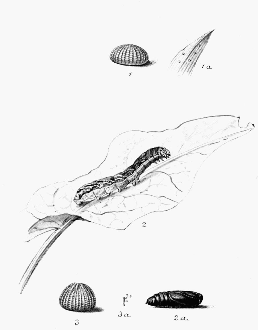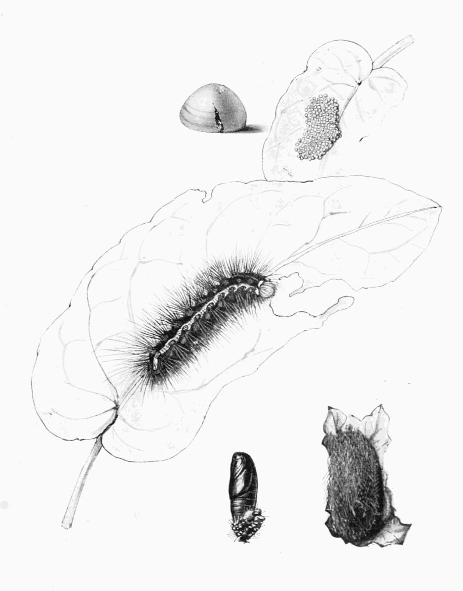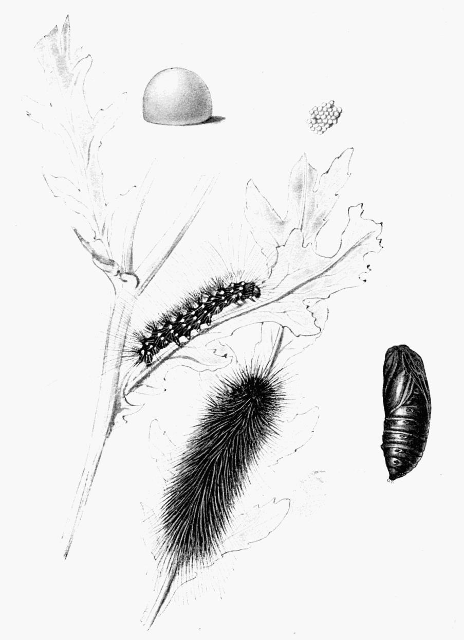 | Eggs, natural size and enlarged; caterpillars and chrysalis. |