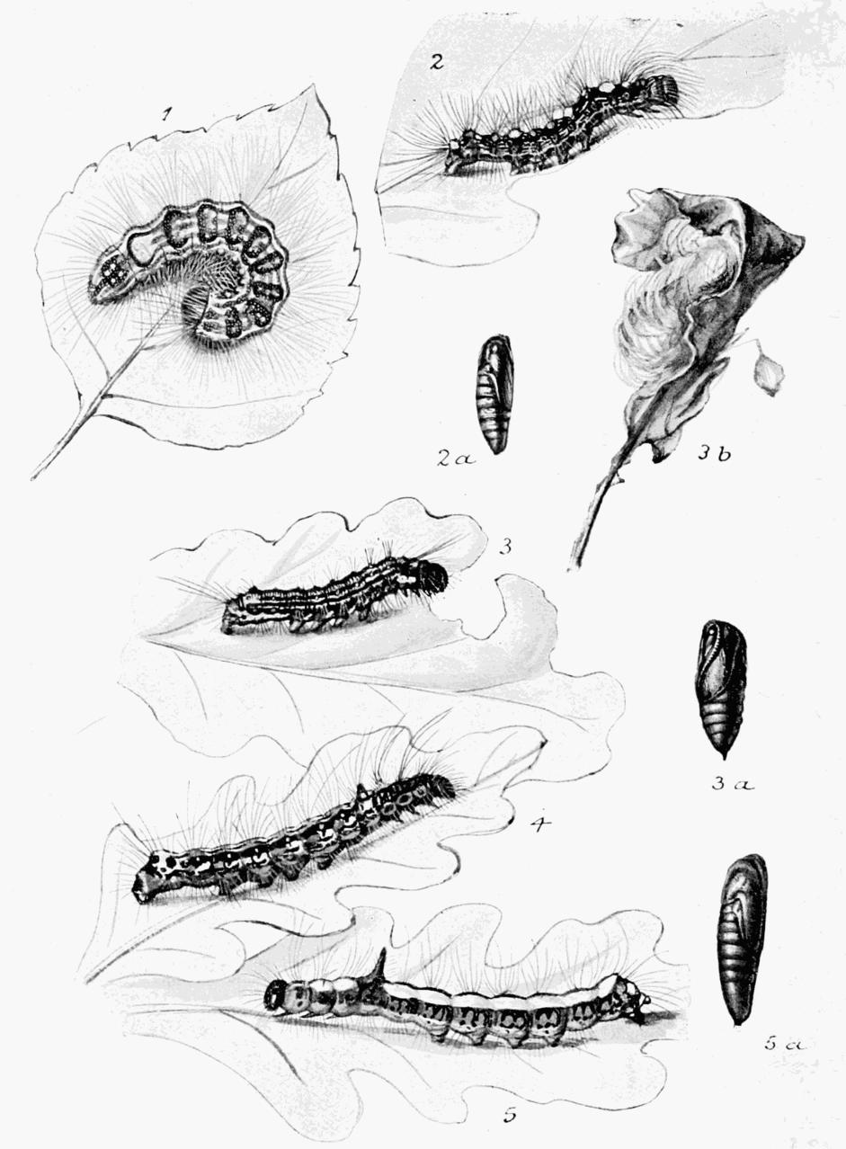 The author desires here to express his thanks to Mr. Robert Adkin, F.E.S., for the loan of specimens of L. cœnosa, E. ilicifolia, D. harpagula, N. albula, N. centonalis, D. barrettii, D. cæsia, P. xanthomista, T. extrema, L. favicolor, L. vitellina, and H. palustris. To Mr. Alfred Sich, F.E.S., for the use of drawings of the caterpillars of D. tiliæ, S. fagi, L. bicoloria, P. ridens, A. auricoma, A. rumicis, A. aceris, N. brunnea, M. oleracea, A. tragopogonis, T. gothica, and T. incerta. To Mr. H. L. Sich for the loan of drawings of the caterpillars of D. euphorbiæ, D. galii, D. chaonia, and P. dictœa. For the material figured on Plate 148, except the larva of L. putrescens, kindly sent by Mr. Walker, of Torquay, he is indebted to Mr. H. M. Edelsten, F.E.S.