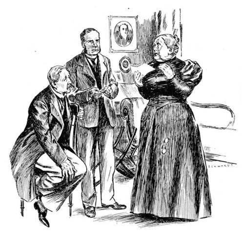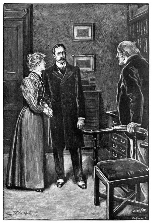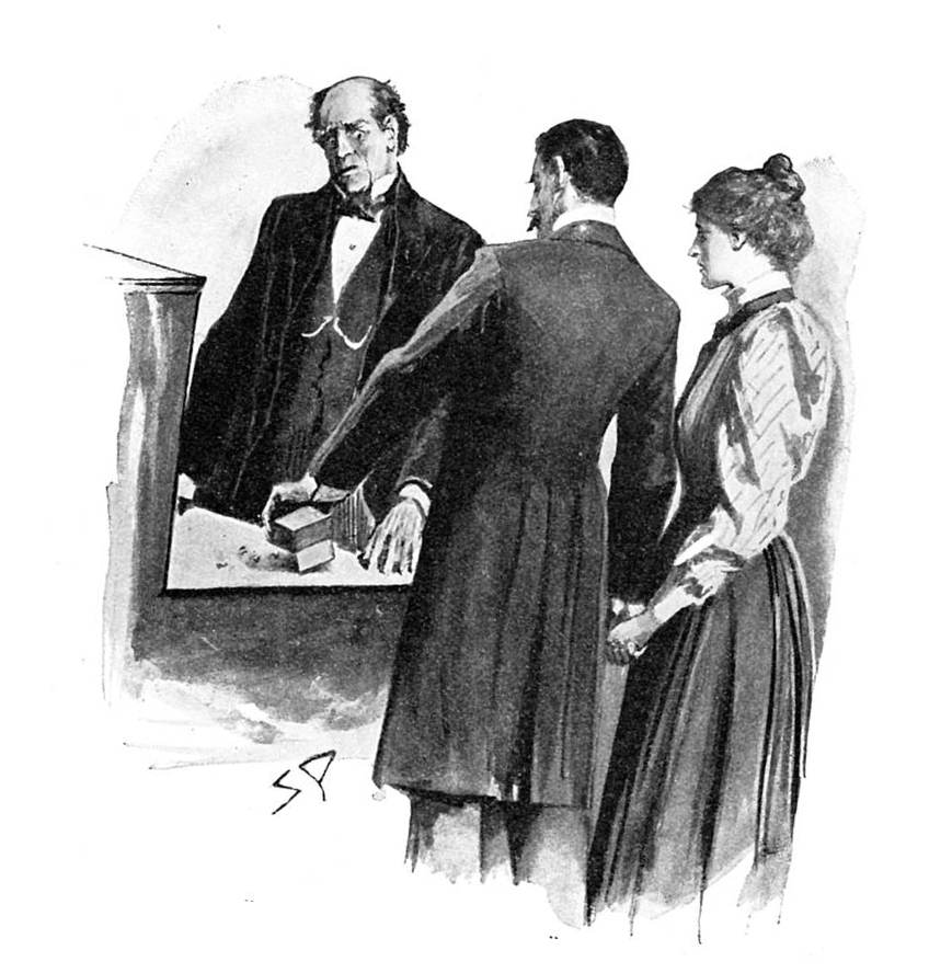 I was not long in following his directions, but I found when I arrived that he had already returned with a police inspector, and another elderly gentleman, who proved to be Mr. Purvis, one of the partners of Morson and Company, the well-known diamond merchants. As an expert in stones he was always prepared to advise the police. They were grouped round the case in which the breast-plate of the Jewish priest had been exposed. The plate had been taken out and laid upon the glass top of the case, and the three heads were bent over it.