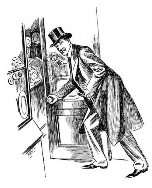 "When the public are gone, we at once put up the great iron shutters, which are absolutely burglar-proof. The watchman is a capable fellow. He sits in the lodge, but he walks round every three hours. We keep one electric light burning in each room all night."