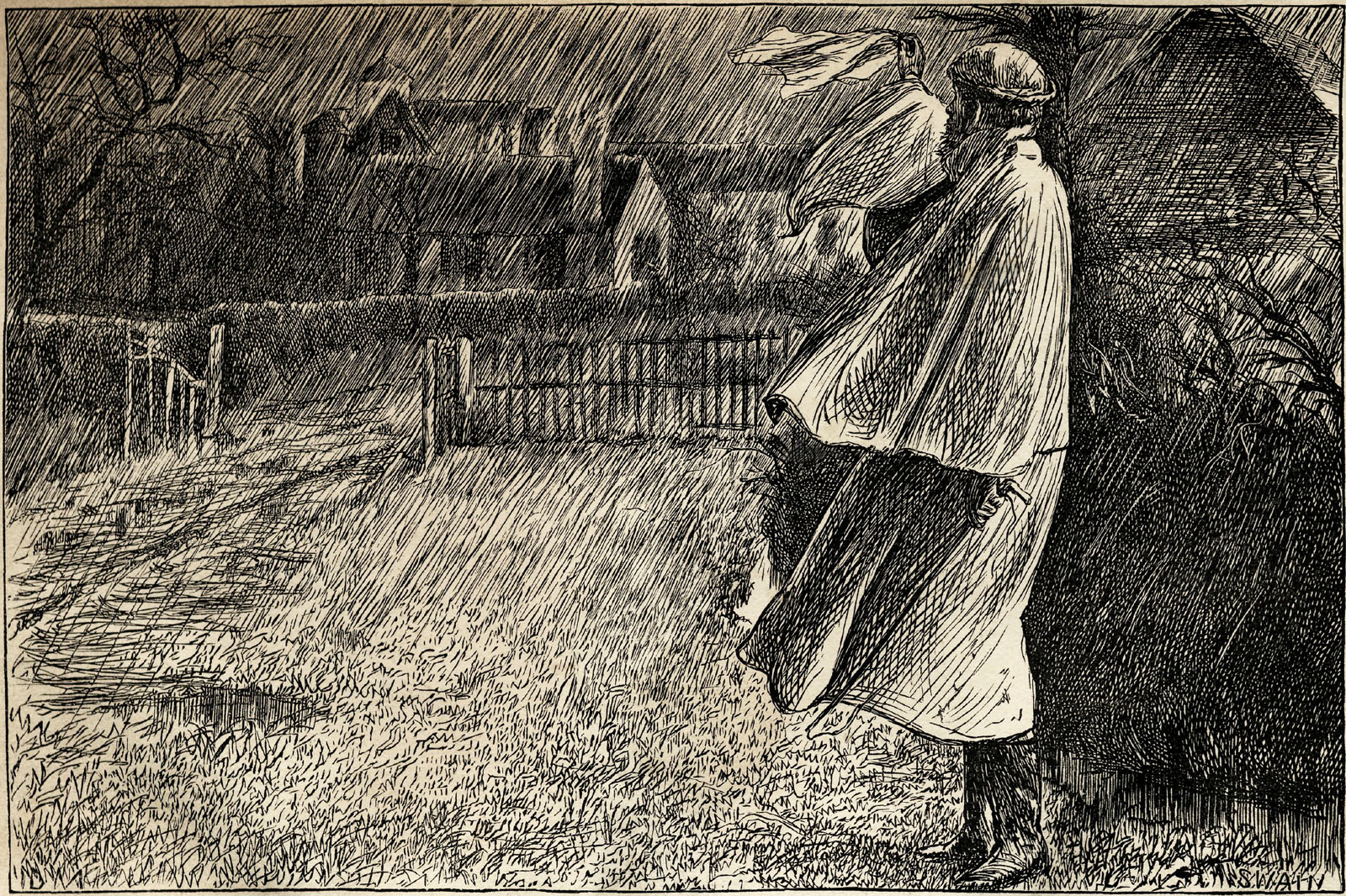 "Yes! I remember! I set myself to tidy my drawers, to string myself up, as it were; and I was so taken up with what I was about that I was quite startled when I heard the rain beating against the window-panes. 'Goodness me!' said I to myself, 'whatever will become of sister's white satin shoes, if she has to walk about on soppy grass after such rain as this?' for, you see, I thought a deal about her having a pair of smart shoes; and this year she has gone and got me a white satin pair just as smart as hers, for a surprise."