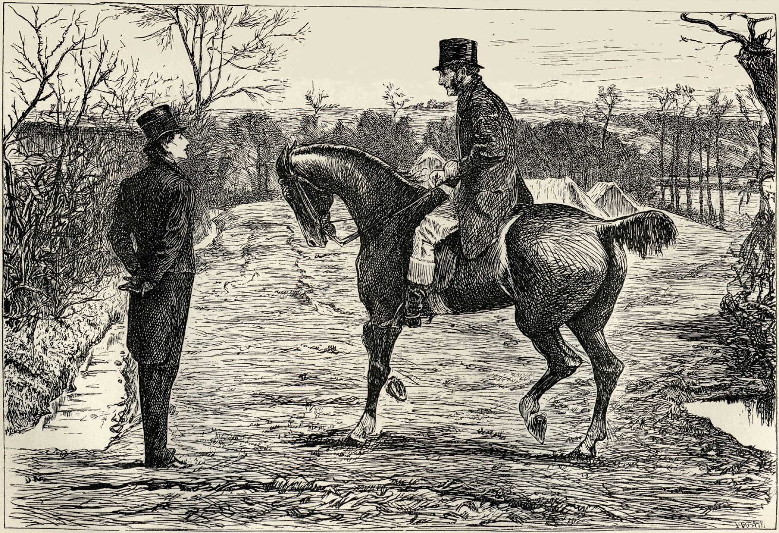 "Your daughter, eh, Gibson?—nice little girl, how old? Pony wants grooming though," patting it as he talked. "What's your name, my dear? He's sadly behindhand with his rent, as I was saying, but if he's really ill, I must see after Sheepshanks, who is a hardish man of business. What's his complaint? You'll come to our school-scrimmage on Thursday, little girl—what's-your-name? Mind you send her, or bring her, Gibson; and just give a word to your groom, for I'm sure that pony wasn't singed last year, now, was he? Don't forget Thursday, little girl—what's-your-name?—it's a promise between us, is it not?" And off the earl trotted, attracted by the sight of the farmer's eldest son on the other side of the yard.