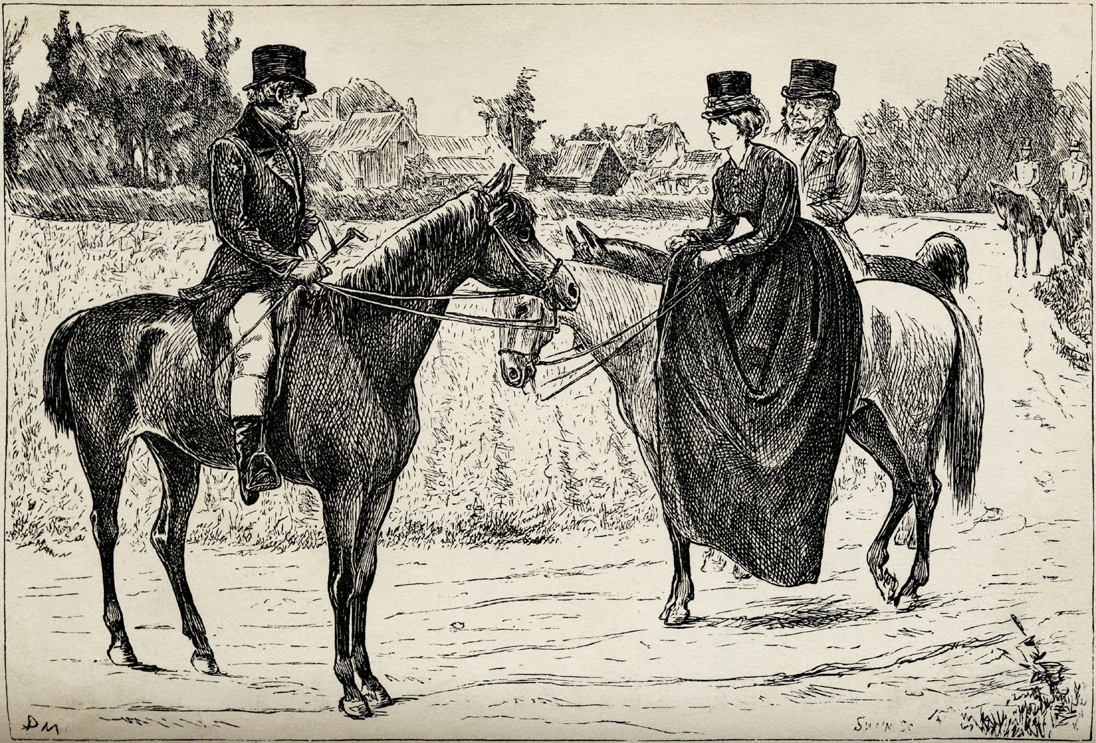 Now, there were two or three things to be done by Mr. Gibson, before he could feel quite comfortable about Molly's going to the festival at the Towers, and each of them involved a little trouble on his part. But he was very willing to gratify his little girl; so the next day he rode over to the Towers, ostensibly to visit some sick housemaid, but, in reality, to throw himself in my lady's way, and get her to ratify Lord Cumnor's invitation to Molly. He chose his time, with a little natural diplomacy; which, indeed, he had often to exercise in his intercourse with the great family. He rode into the stable-yard about twelve o'clock, a little before luncheon-time, and yet after the worry of opening the post-bag and discussing its contents was over. After he had put up his horse, he went in by the back-way to the house; the "House" on this side, the "Towers" at the front. He saw his patient, gave his directions to the housekeeper, and then went out, with a rare wild-flower in his hand, to find one of the ladies Tranmere in the garden, where, according to his hope and calculation, he came upon Lady Cumnor too,—now talking to her daughter about the contents of an open letter which she held in her hand, now directing a gardener about certain bedding-out plants.
