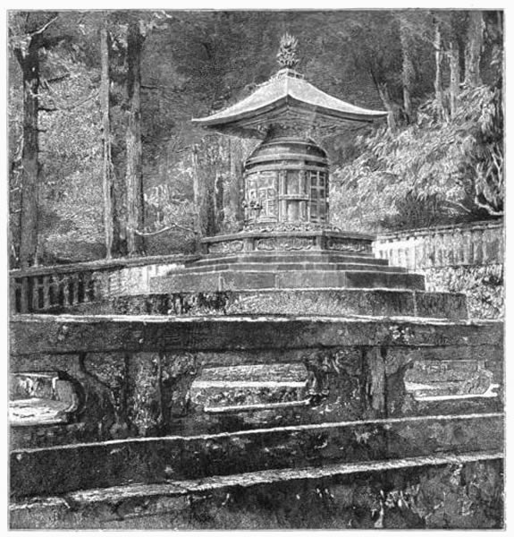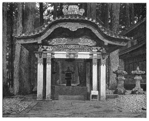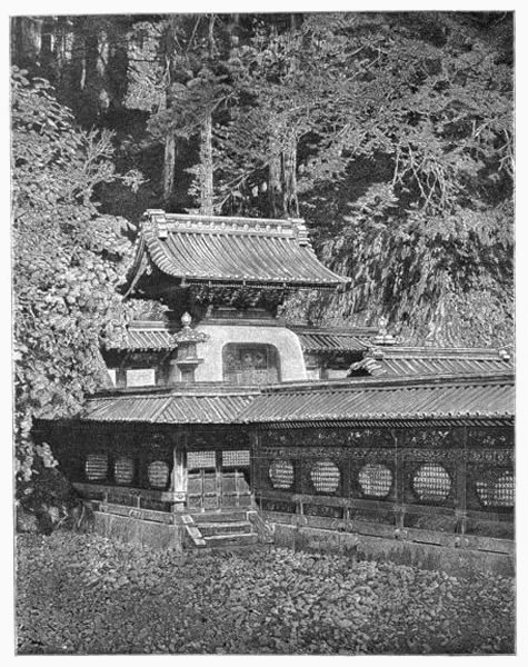 Hidetada, the son of Iyéyasŭ, is buried at Yeddo (Tokio); but Iyémitsŭ, the grandson, has a temple and a tomb here in the forest, alongside of his grandfather's.