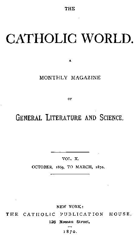 Project Gutenberg's The Catholic World, Vol. X, October 1869, by Various