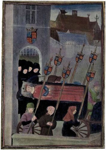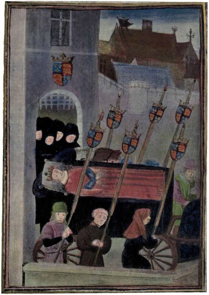 | The Funeral of Richard II. From a Manuscript of Froissart’s Chronicles. British Museum, Harl. 4380. |