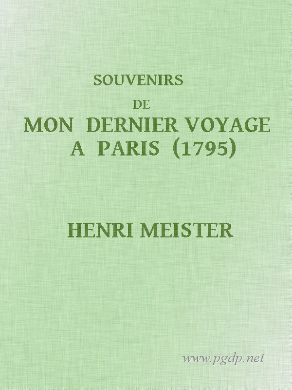 Fils et petit-fils de pasteurs de l'Église réformée, Henri Meister [1], après avoir terminé ses études à Zurich, et avoir été consacré au saint ministère, était venu à Paris au printemps de 1766,—il n'avait pas encore vingt-deux ans,—pour y être précepteur du fils d'une jeune et jolie veuve, Mme de Vermenoux.
