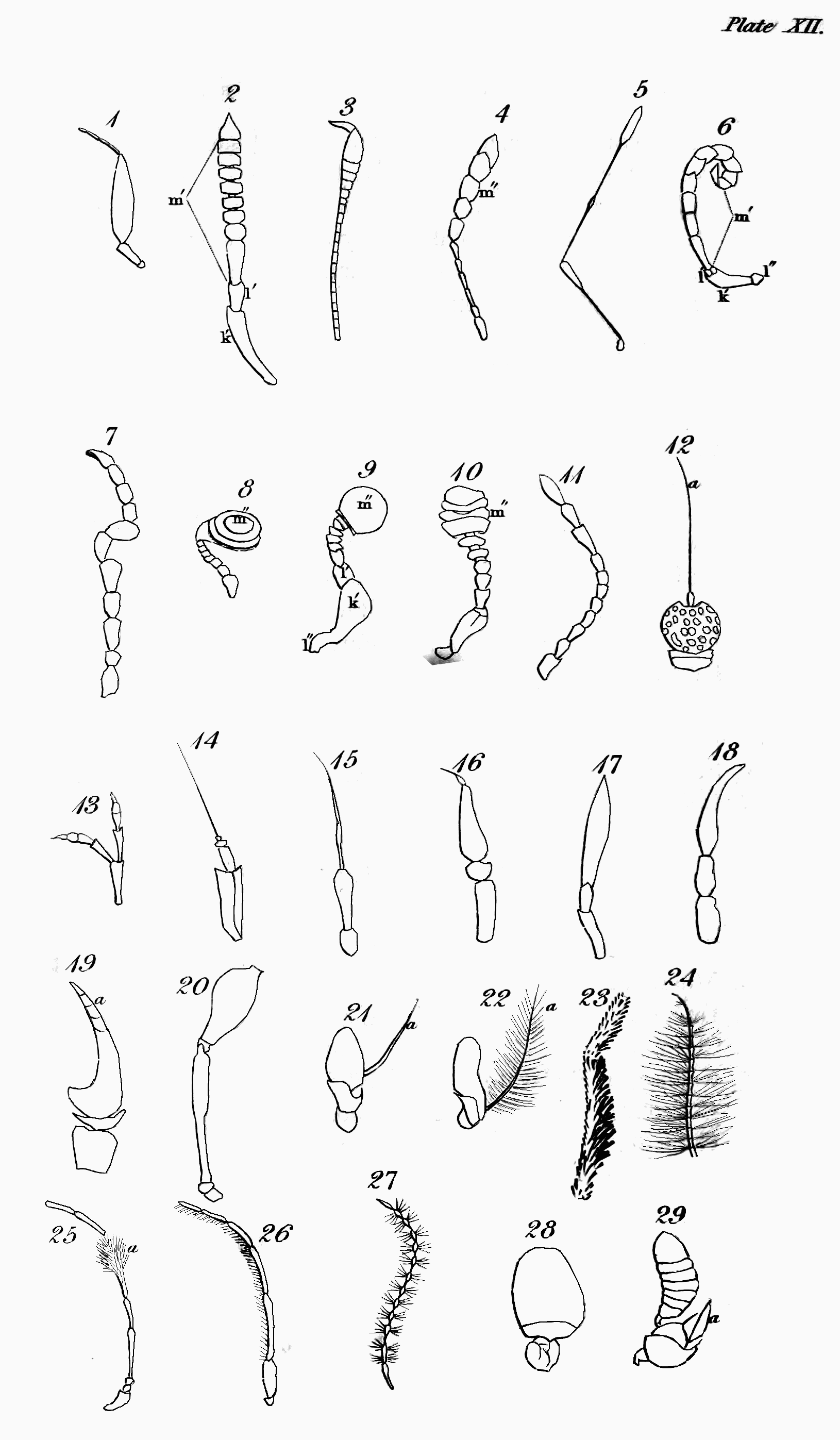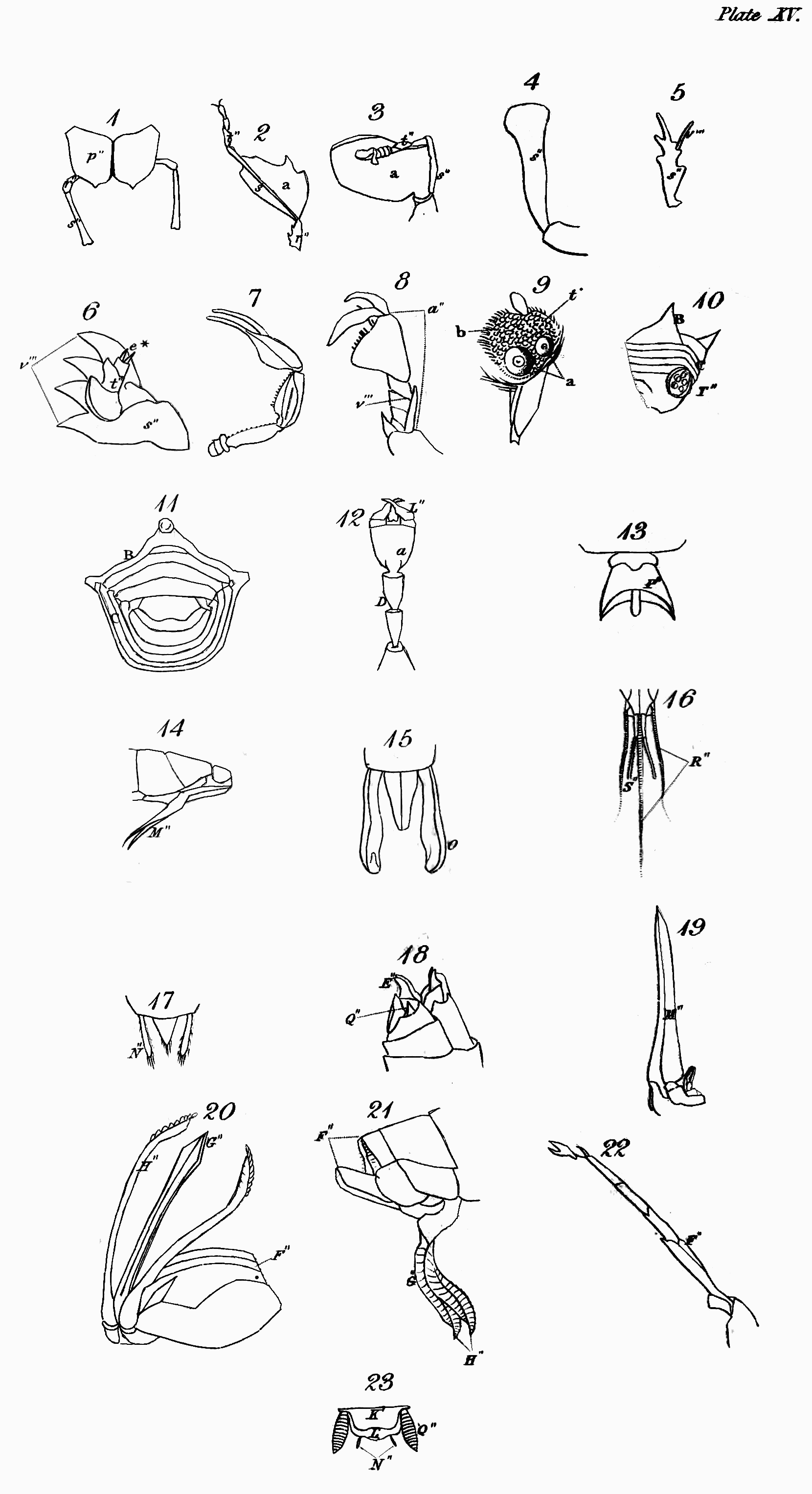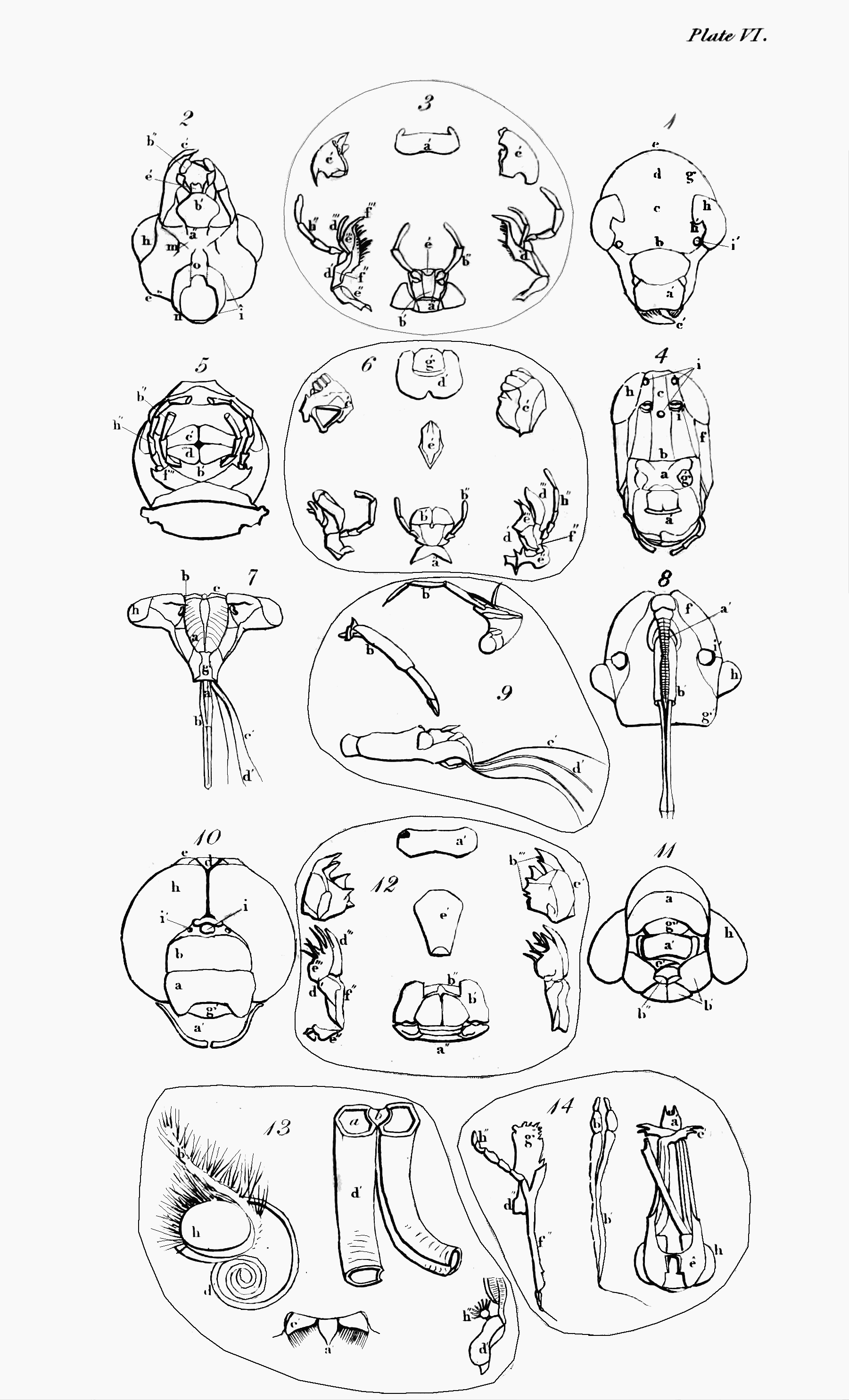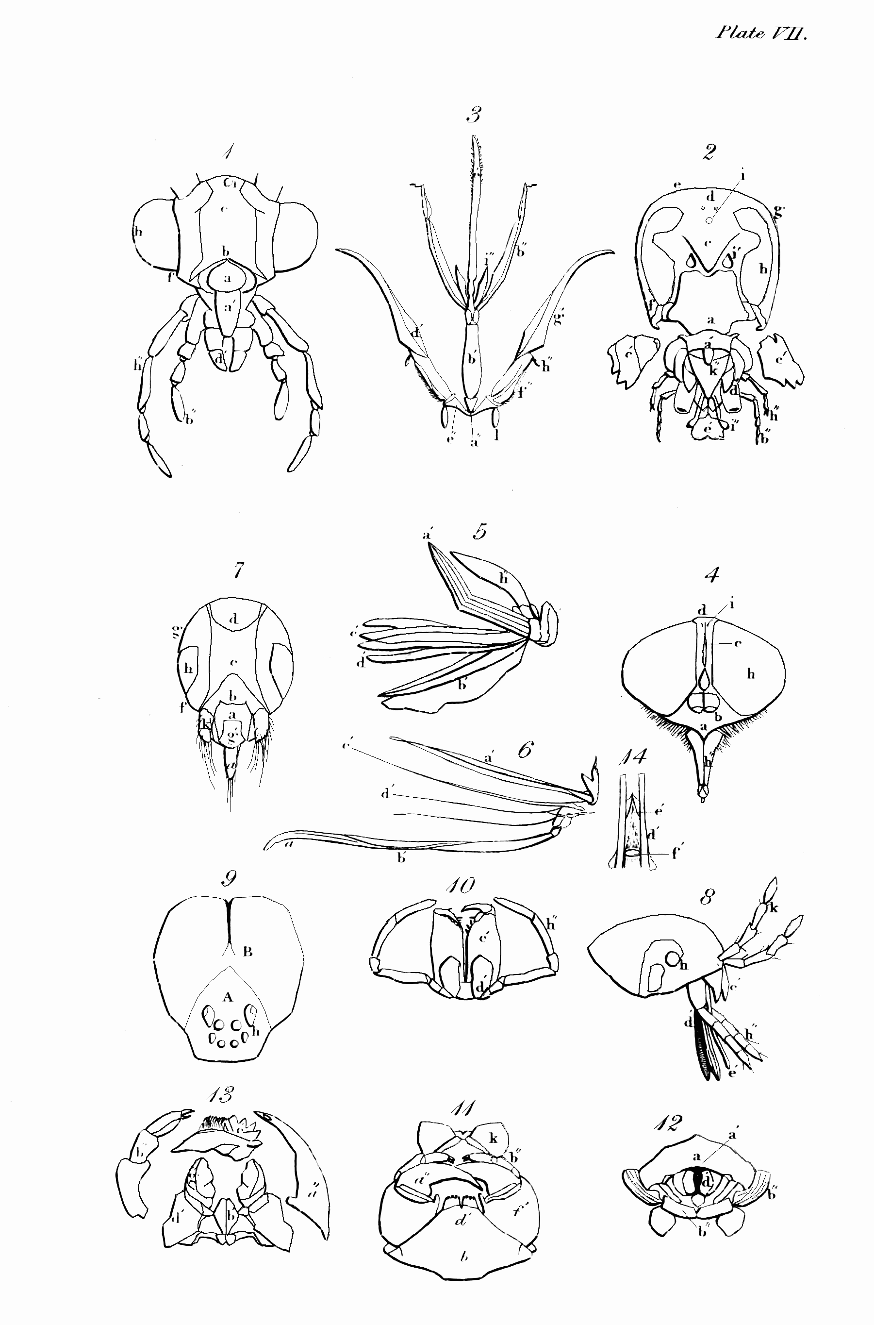 [2192] Recourse must be had to the synoptical table of the nomenclature of the parts of the external crust of Insects (Vol. III. p. 354) for the explanation of the reference letters not here given.