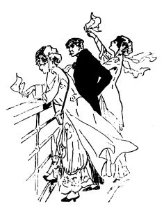 "With whom," continued Kingsbury, thoughtfully, "I am agreeably in love. Such matters, Smith, cannot be wholly controlled by a sense of duty to one's country. Beauty and rank seldom coincide except in fiction. It appears"—he removed his single eyeglass, polished it with his handkerchief, replaced[Pg 315] it, and examined the moon—"it appears," he continued blandly, "that it is the Countess of Semois who is—ah—so to speak, afflicted with red hair.... The moon—ahem—is preternaturally bright this evening, Smith."