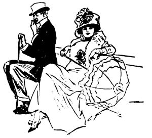 When we reached the beautiful meadow of Longchamps, with its grand-stand covered with waving flags and the sunshine glowing on thousands of brilliant parasols, we left the taxi, and found a place on what a New Yorker would call "the bleachers." The bleachers were covered with pretty women, so we were not in bad company. As for the great central stand, where the President of the Republic sat surrounded by shoals of brilliant officers, it was a mass of colour from flagstaff to pelouse.