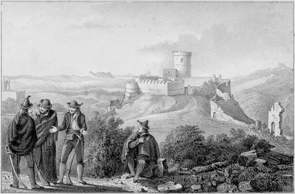 Proceeding onwards, from the pass about a mile, the little village of Montejaque shows itself, peeping from between the two peaks of the mountain on the left, and, seemingly, quite inaccessible, even to a goat.