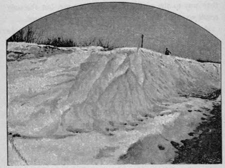 It is clear that during the whole progress of the storm the temperature was never very low. The great cold came from the strength of the wind. During the storm, and in the course of the severe days that followed, not more than five or six degrees of frost were registered, and on one day of the week, when there was snow on every hand, the thermometer never rose higher than freezing point. The wind, however, was terrific, its maximum force during the night being 10, and 12 is the highest possible. To this extraordinary velocity is due the fact that the visitation is best describable by the[4] term "blizzard." With a less violent wind, there would have been a great fall of snow, as great probably as that of January, 1881, when difficulties and disasters painfully comparable with those of the present year were spread broadcast over not only the western portion, but the whole of England, but it would have been a snowstorm and not a blizzard, and many of the phenomenal aspects of the visitation under notice would have been absent. In the course of the present narrative many remarkable effects due to the powdery nature of the snow will have to be recorded. Before concluding the meteorological portion of the subject, and getting on with the story, it may be well to observe that according to the best authorities a blizzard is caused by the fierceness of the wind, which blows the cold into the vapour in the atmosphere and consolidates it into fine snow without allowing time for the formation of a snow-flake. We are accustomed to associate ideas of gentleness and beauty and stillness with the fall of snow. The blizzard, which is apparently—but, of course, only in name—a new acquaintance, shews us the reverse side of the picture, and suggests nothing beyond merciless fury and destructiveness.
