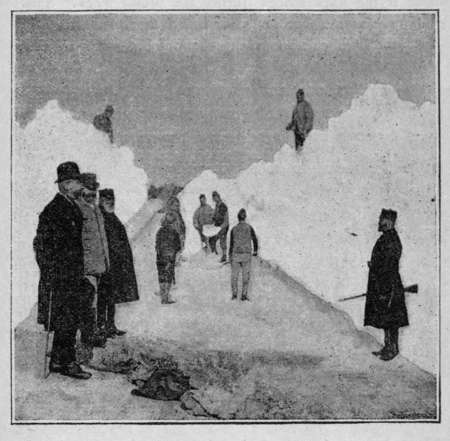Unhappily the departure of the storm was not so sudden as its advent. The Tuesday following the night of tempest was an indescribably wretched day, and the barometer fell to 29·180. Wednesday brought sunshine and hope with it, and afforded the one bright spot in this gloomy record by showing up many effects of wonderful beauty in the snow-covered landscapes. Still the wind was never at rest, though the thermometer went up to 120° in the sun. Thursday followed with more snow, and occasional sharp and ominous squalls, and some apprehension was felt that a repetition of Monday's experience was in the air, but fortunately the week wore away without further calamity, and the work of repairing to some extent the damage done, and thereby making existence for man and beast possible, a task hitherto carried on under tremendous difficulties, was vigorously pushed forward.