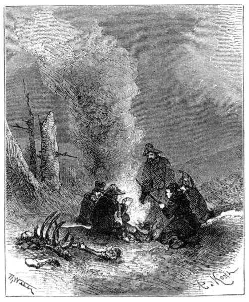 «Peu de monde, écrit M. René Bourgeois, chirurgien-major de la grande armée, échappa à la congélation, et chacun en fut frappé dans quelques parties du corps. Heureux ceux à qui elle n'atteignit que le bout du nez, les oreilles et une partie des doigts! Ce qui rendait les ravages encore plus funestes, c'est qu'en arrivant près des feux, on y plongeait imprudemment les parties refroidies, qui, ayant perdu toute sensibilité, n'étaient plus susceptibles de ressentir l'impression de la chaleur qui les consumait. Bien loin d'éprouver le soulagement que l'on recherchait, l'action subite du feu donnait lieu à de vives douleurs, et déterminait promptement la gangrène.»