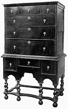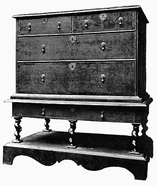 [1]William the Third was a Dutchman and, although he was for thirteen years King of England, he remained a Dutchman until his death. His English was bad, his accent was rough, and his vocabulary limited. He had a Dutch guard, the friends whom he trusted were Dutch, and they were always about him, filling many of the offices of the Royal Household. He came to England as a foreigner and it remained to him a foreign country. His advent to the throne brought about certain changes in the style of furniture which are generally described as "the Dutch influence," which, however, had its origin at least as far back as the reign of Charles II.