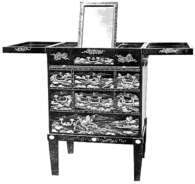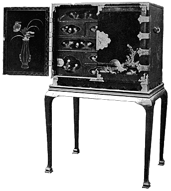 This fashion first brought into use the various forms of cabinets used for the display of china. The earliest pieces would therefore date from the end of the seventeenth, or the beginning of the eighteenth century. [14]