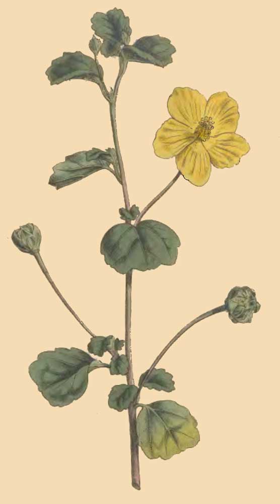 It will be seen by the synonyms, that authors have been divided in their opinions as to the genus of this plant; Linnæus the younger, in his Suppl. makes it an Hibiscus; Cavanille, a Pavonia; L'Heritier, an Urena; Mr. Aiton, an Hibiscus; not partial to the multiplying of genera, unless there be an obvious necessity for it, we have in the present instance followed the first and last of these writers.