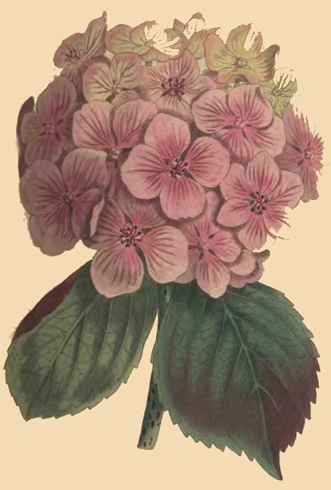 HYDRANGEA hortensis foliis ellipticis serratis glaberrimis staminibus æqualibus. Smith icon. rar. t. 12.
