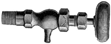 Below the lower gauge cock there is another cock used for draining the gauge and blowing it off when there is a pressure of steam on. By occasionally opening this cock, allowing the heated water or steam to blow through it, the engineer may always be sure that the passages into the water gauge are not stopped up by any means. By closing the upper cock and opening the lower, the passage into the lower may be cleared by blowing off the drain cock; by closing the lower gauge cock and opening the upper the passage from the steam space may be cleared and tested in the same way when the drain cock is opened. If the glass breaks, both upper and lower gauge cocks should be closed instantly.