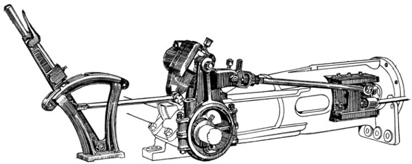The engine frame is of the girder pattern, with overhanging cylinder attached to one end.