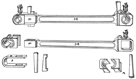 Cross-head has shoes unusually long and wide. The engine frame is of the box pattern, and is also used as a heater, feed water for either injector or steam pump passing through it. Valve is of the plain locomotive slide type.
