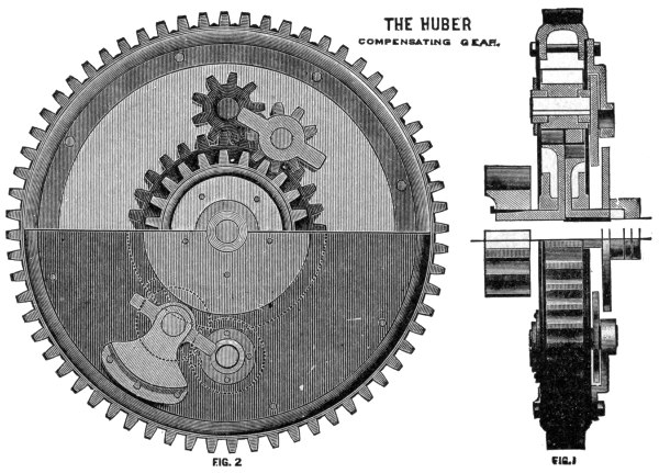The compensating gear is of the bevel type, half shrouded and so close together that sand and grit are kept out. Three pinions are used, which it is claimed prevent rocking caused by two or four pinions.