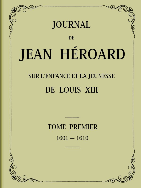 Ce médecin se nommait Jean Héroard (on prononçait Hérouard); il était alors âgé d'environ cinquante ans et, depuis près de trente années, il avait été successivement attaché à la personne des rois Charles IX, Henri III et Henri IV en qualité de médecin ordinaire. Le 27 septembre 1601, naissait enfin le prince tant désiré qui devait régner sous le nom de Louis XIII, et, dès son entrée en fonctions auprès du Dauphin, Héroard commençait à écrire un «Journal et registre particulier», dont la rédaction, poursuivie pendant plus de vingt-six années, ne devait cesser qu'avec la vie de l'auteur, mort devant la Rochelle «au service du Roi son maître, à la santé duquel il s'étoit entièrement dédié, âgé de soixante-dix-huit ans, moins curieux de richesses que de gloire d'une incomparable affection et fidélité».