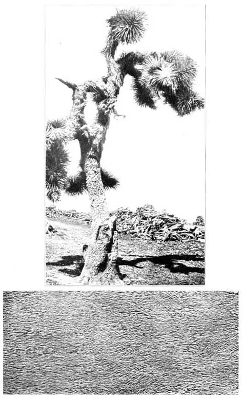 The bamboo plant with its numerous stalks and delicate foliage resembles a plume of giant ostrich feathers. The stems attain heights of seventy feet and diameters of four and six inches (see Fig. 3 plate). Knots or joints are at first close together, but are later one or two feet apart. Growth is surprisingly rapid. A Philippine specimen, which when measured was eighteen inches high and four inches in diameter, grew two feet in three days.[120] Florida stalks have reached heights of seventy-two feet in a single season.[121] The plants are apt to take complete possession of the ground on which they grow. Those who use bamboo value it highly. It is employed entire or else split into segments. Some can be [p191] opened and flattened into rough boards, splitting everywhere but holding together.[122] For vessels it is cut off with reference to the partitions. The subject is thus summarized by Dr. Martin:[123] "The Chinese make masts of it for their small junks, and twist it into cables for their larger ones. They weave it into matting for floors, and make it into rafters for roofs. They sit at table on bamboo chairs, eat shoots of bamboo with bamboo chop-sticks. The musician blows a bamboo flute, and the watchman beats a bamboo rattle. Criminals are confined in a bamboo cage and beaten with bamboo rods. Paper is made of bamboo fibre, and pencils of a joint of bamboo in which is inserted a tuft of goat's hair."