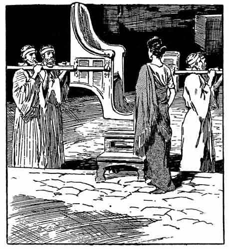 Litters were also used at that time, and Pliny calls them "travellers' chambers." They were borne on shafts, and special slaves used to act as bearers. Roman ladies often travelled in covered 8 carriages called carpenta, which were gorgeously decorated.