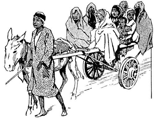 There are many other strange conveyances to be seen in Turkey, perhaps the most curious of all being the sedan chairs which, although they have quite disappeared from other cities of Europe, are still used at night or on snowy days in the streets of Constantinople. In the eighteenth century sedan chairs were common in England, and in them the powdered and patched ladies went to their balls and routs, but it is strange to think of the quaint old-world conveyances being carried by stalwart Turkish porters along the dark, muddy streets of an Oriental city. These chairs, like the agricultural carts of Wales, come down to us from a past age, and another strange survival is seen at Schiessel, a village near Bremen, where the peasant girls drive to weddings and other festivities in large wagons that, painted and decorated with garlands of flowers, are exactly like the old carts and charettes of the Middle Ages.
