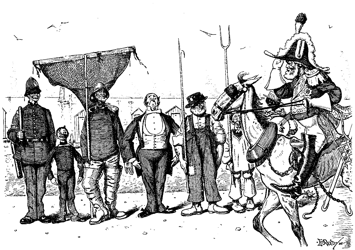 Many years ago, in 1895, our esteemed contemporary, the Daily Graphic, suggested the appointment of a Minister of Fine Arts. This seemingly admirable scheme was soon after carried out. The first Minister was a cautious man. His one great improvement, which met with universal approval, was to remove all the statues and fountains from every part of London, and to place them in a row on Romney Marsh, from Dungeness to Hythe, where they would undoubtedly scare away any French army endeavouring to land. The second Minister tried to introduce the so-called "Queen Anne," or Dutch architecture, and prepared a scheme for altering the whole of London. As a beginning, the north side of Oxford Street, from Holborn to the Marble Arch, was completely transformed. Along the whole distance stretched a fantastic row of red-brick buildings, the surface of which was diversified at every possible point by useless little windows, and little arches, and little projections, and little recesses, and little balustrades. These had risen to the level of the second floors, when a change of Government brought in a Minister who believed only in English architecture of the fifteenth century. Under his directions the new buildings were therefore continued in stone, in imitation of the Houses of Parliament, but the work was stopped by his death. His successor, though of course one of the Gothic party, preferred the Gothic architecture of Italy, and the upper parts of the houses were therefore finished in that style. As at that time the reduction of the Budget was urgently needed, it was decided to use painted stucco instead of real marble, as in Italy.