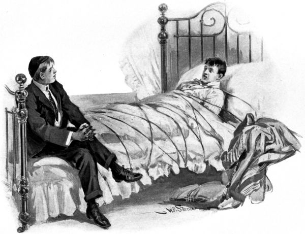 Most of the fellows are terribly nervous to-night. They go around as though they were looking for something, and would cry if they didn’t find it soon. And the trainer is the worst of all. Brattle, the captain, is fine, though. He isn’t any more nervous than an alligator, and has been sitting still all the evening, talking with a lot of the old graduates about the game. Once he came in the writing-room, where I’m sitting, and asked what I was doing. When I told him, he smiled, and said to tell you that if anything happened he’d look after my remains himself! Maybe he thought I was nervous. But if I am, I’m not the only one. Gates is writing to his mother, too, at the other table.