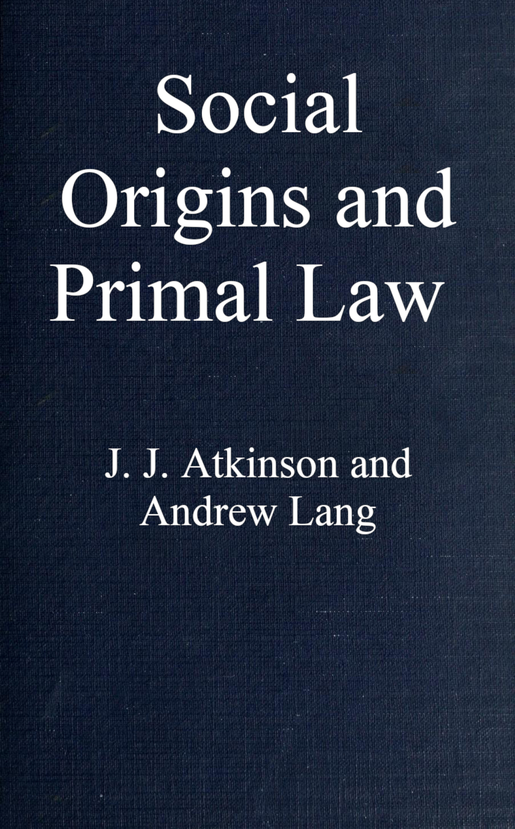 To trace human institutions back to that hypothetical stage of first emergence from the brute is the purpose of the following treatise, 'Primal Law,' by Mr. Atkinson. It were superfluous for me to dwell on the audacity of his enterprise. Of thoroughly human man we know a good deal: of the brutes we know something. Of a hypothetical creature, not wholly brute, but not yet 'articulate-speaking man,' we know nothing, and as to the ways of his supposed next of kin, 'the great extant anthropoid apes,' our knowledge is vague, resting on the accounts of native observers. Such a creature, however, half ape, half human, is in part the theme of Mr. Atkinson's speculations, on which I venture to express no opinion: as not being persuaded that man ever had such a direct ancestor.