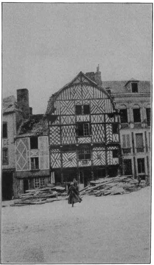 On our homeward journey I saw things that simply did not exist to my eyes earlier in the day. The country around Bailly is full of trenches and barbed wire, dug-outs, shell holes, and shade trees cut down by the road, all of which escaped me before I had had those five full hours of tense observation; and just as I did not at first distinguish the signs of war, so I did not fully consider until afterward the completeness of the destruction we had seen. In the section of forty miles square that we skirted, not one bridge is left—the only ones now in existence are of temporary military construction. The same is true of telephone and telegraph poles—not one remains. Also there is not a stick of furniture of any sort except what was too heavy to be taken away, such as pulpits and big tables, which were hacked to pieces and are of no value now. That the furniture was not blown up with the houses I am sure, for not a piece can be found in the ruins, and I looked carefully for any trace. Germany must be full of French furniture, and what it is all wanted for I can’t imagine.