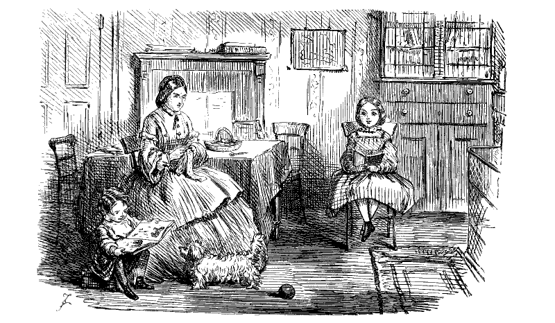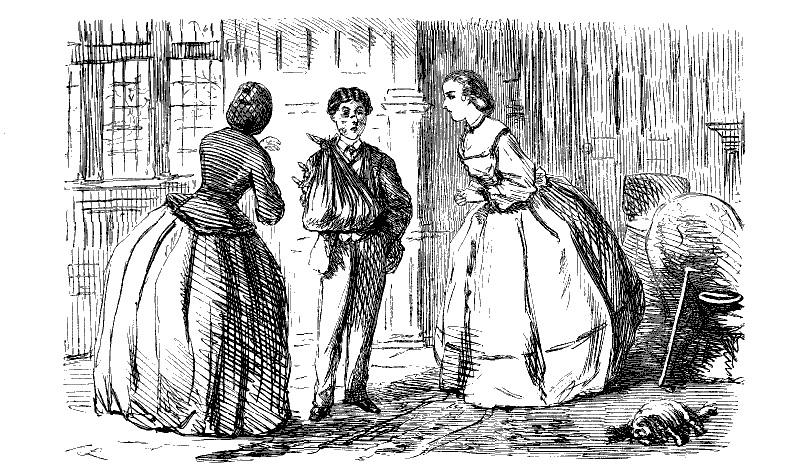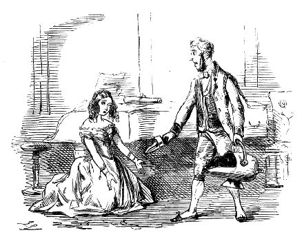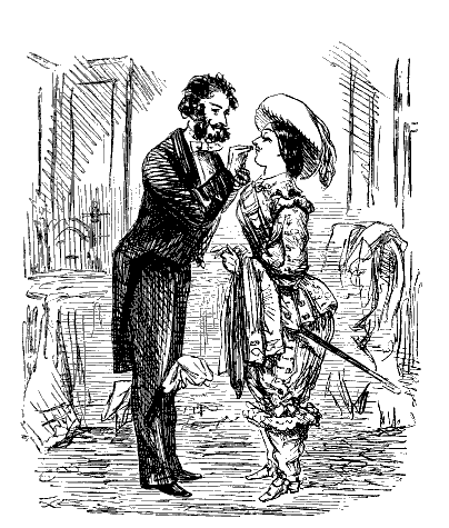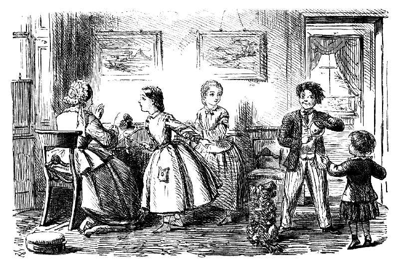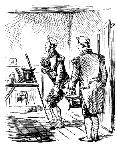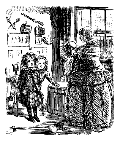 THIS IS THE CRITICAL POSITION OF LOUISA AND CAPTAIN CHARLEY BANG—HIS WHISKER CAUGHT IN HER EARRING, AND PAPA KNOCKING AT THE DOOR!