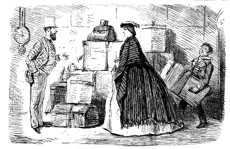 Wife (to Unreasonable Monster). "IT'S OF NO USE, GEORGE, YOUR SAYING, 'HANG IT, MARIA;' I MUST HAVE SOME PLACE TO PUT MY THINGS!"