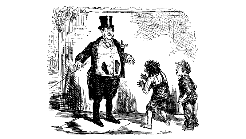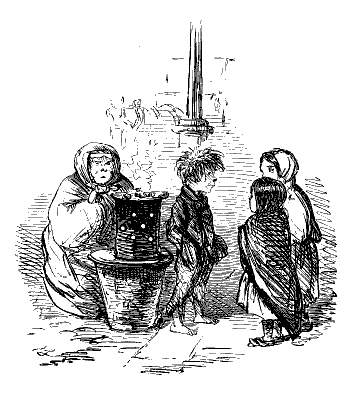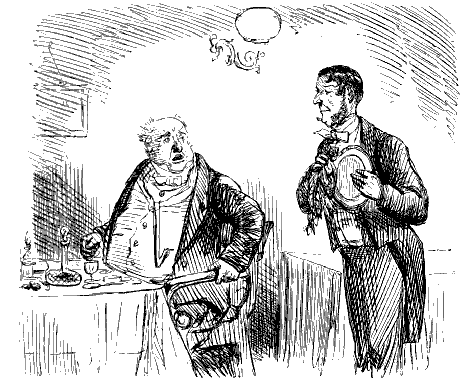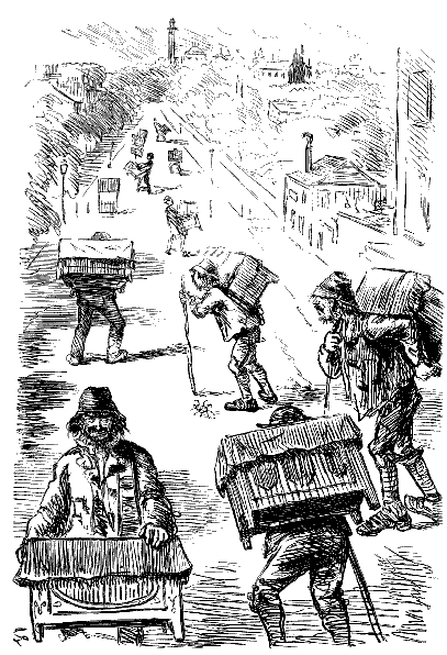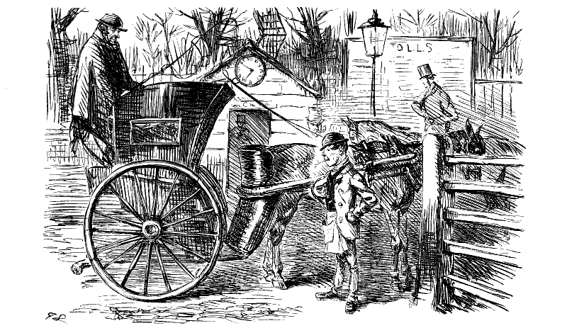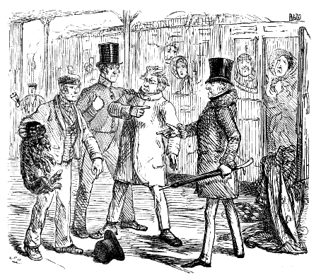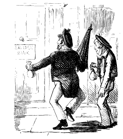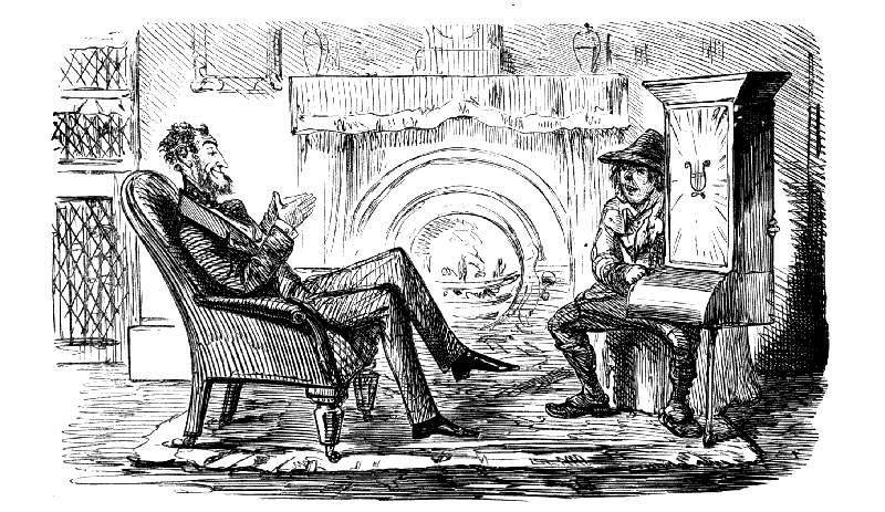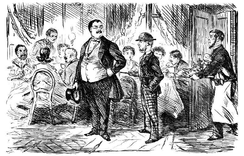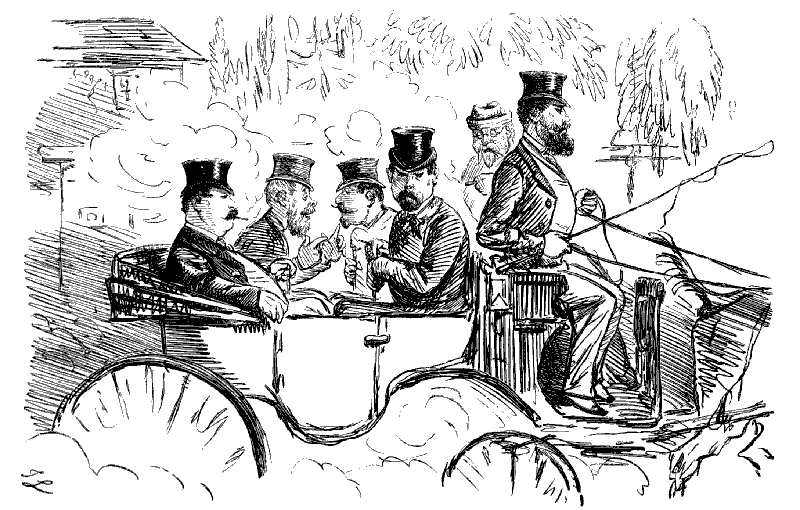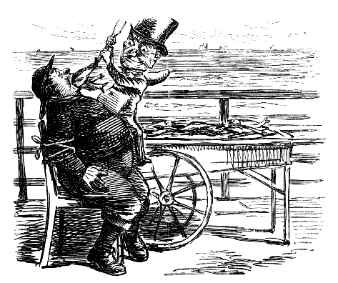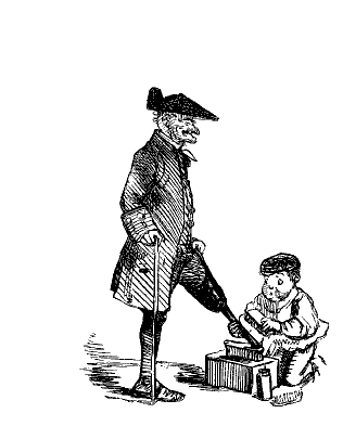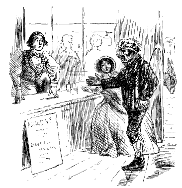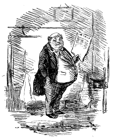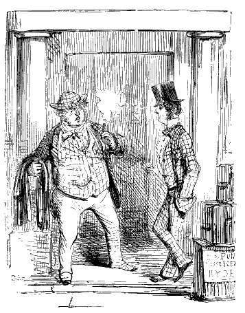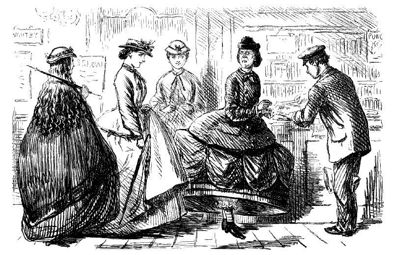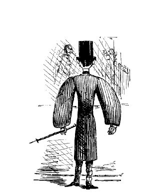 Swell (who has received Four Penn'orth of Coppers in Change). "HERE! BY JOVE, YOU KNOW LOOK HERE! HI! WHAT THE DEUCE!—I SAY—WHAT AM I TO DO WITH THESE HA'PENCE, YOU KNOW?"