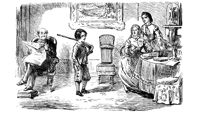 Child. "WELL, THEN, I'M ONE OF THOSE BOYS WHO CAN ONLY BE MANAGED WITH KINDNESS—SO YOU HAD BETTER GET SOME SPONGE-CAKES AND ORANGES AT ONCE!"