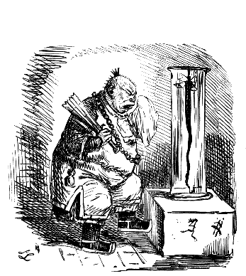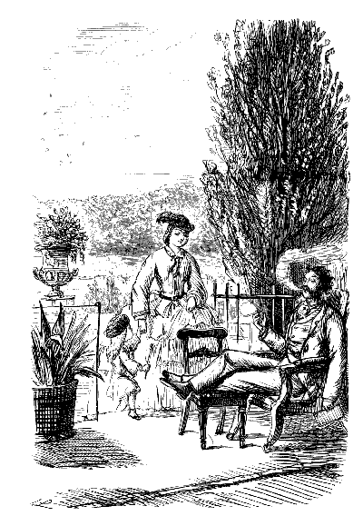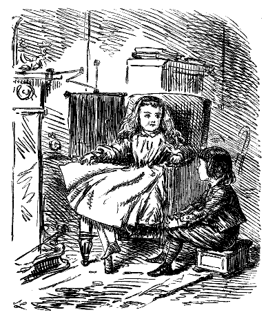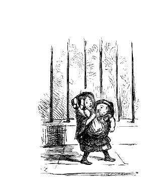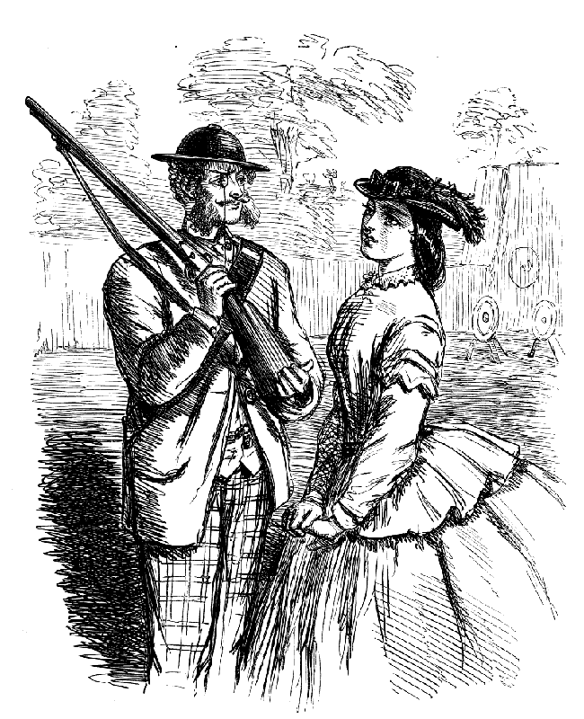 Alfred. "OH, IF YOU PLEASE, UNCLE, WE WANT TO PLAY AT BEING WILLIAM TELL; WILL YOU BE SO KIND AS TO STAND WITH THE APPLE ON YOUR HEAD?"