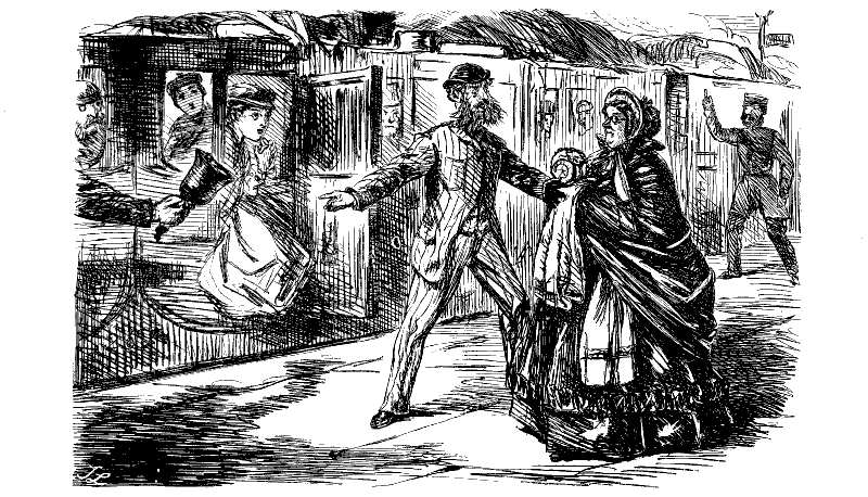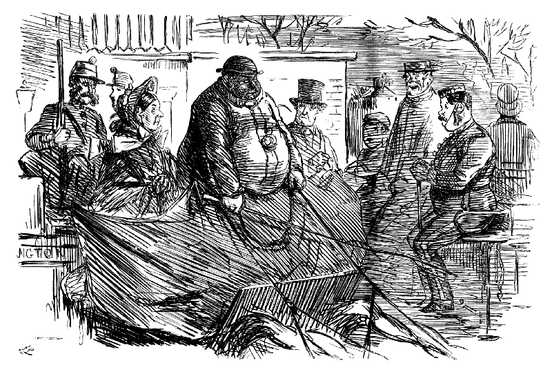 Policeman (who, we are bound to say, is extremely civil). "WHITE TICKET, MA'AM? LETTER H?—YES, MA'AM. QUITE RIGHT. OVER THE HURDLES, IF YOU PLEASE!"